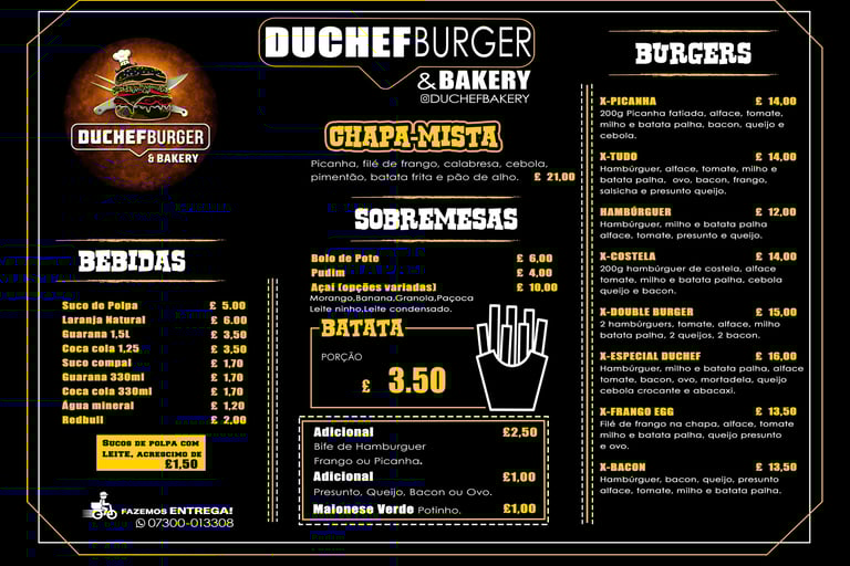Na DuChef Burger você pede direto pelo WhatsApp, com atendimento rápido e entrega própria, sem intermediários.