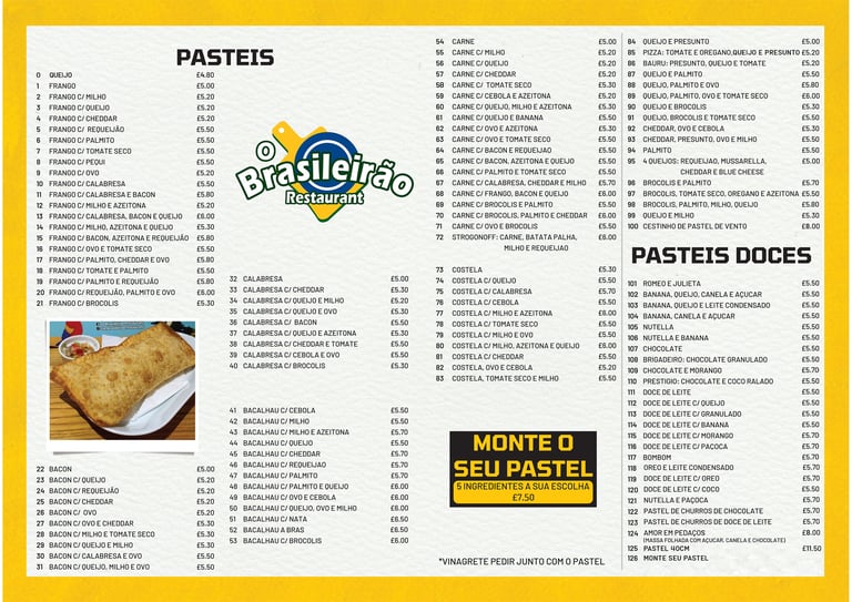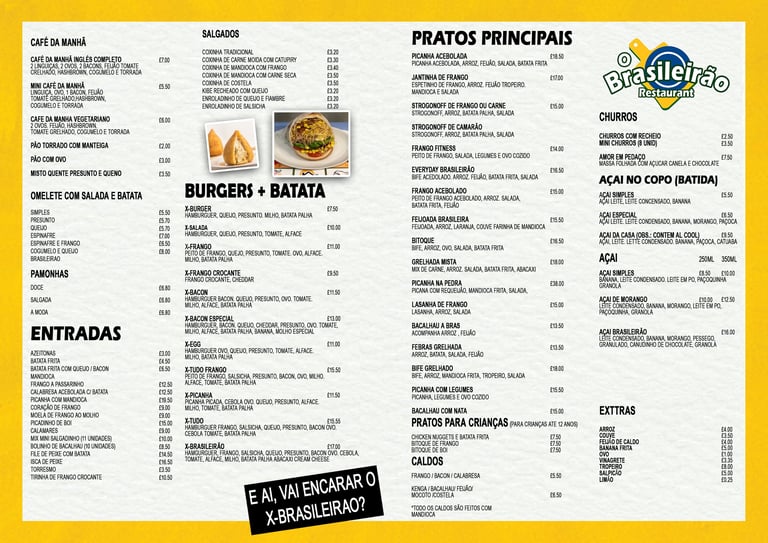 Localizado no vibrante NW10, bem no meio da comunidade brasileira em Londres, o O Brasileirão é o seu refúgio para sabores autênticos da terra do samba e da feijoada. Aqui, você encontra de tudo: pratos quentes e reconfortantes, lanches irresistíveis, pastéis crocantes recheados com queijo, carne ou palmito, e os clássicos cachorros-quentes generosos que vão te transportar direto para as ruas de São Paulo ou Rio de Janeiro.
